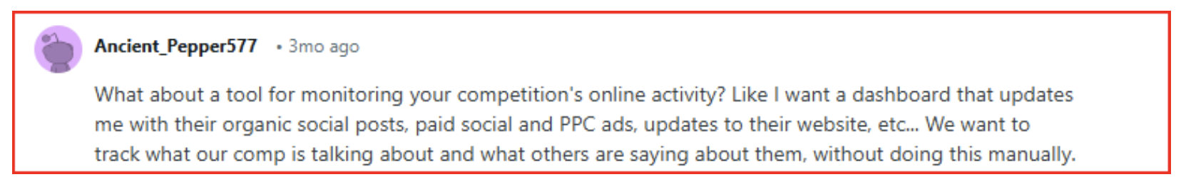 Ability to track actual competitor activity (posts, updates, campaigns)
