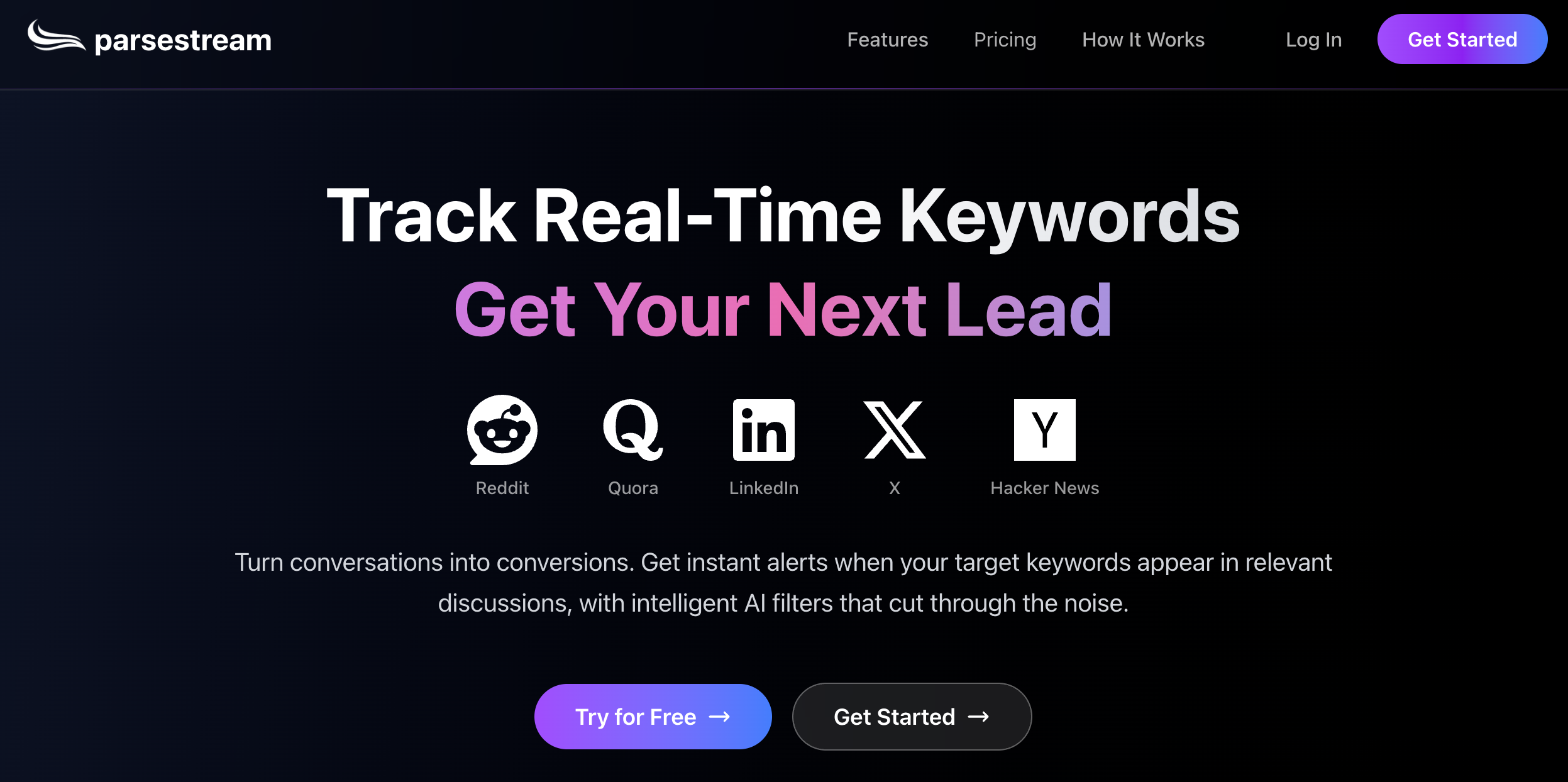 ParseStream | Tracks keywords + suggests replies in real time | Reddit, Quora, LinkedIn, X, HN | AI filtering + relevance | Filtered mentions + replies | ⚠️ Partial (reply suggestions) | $29 |
