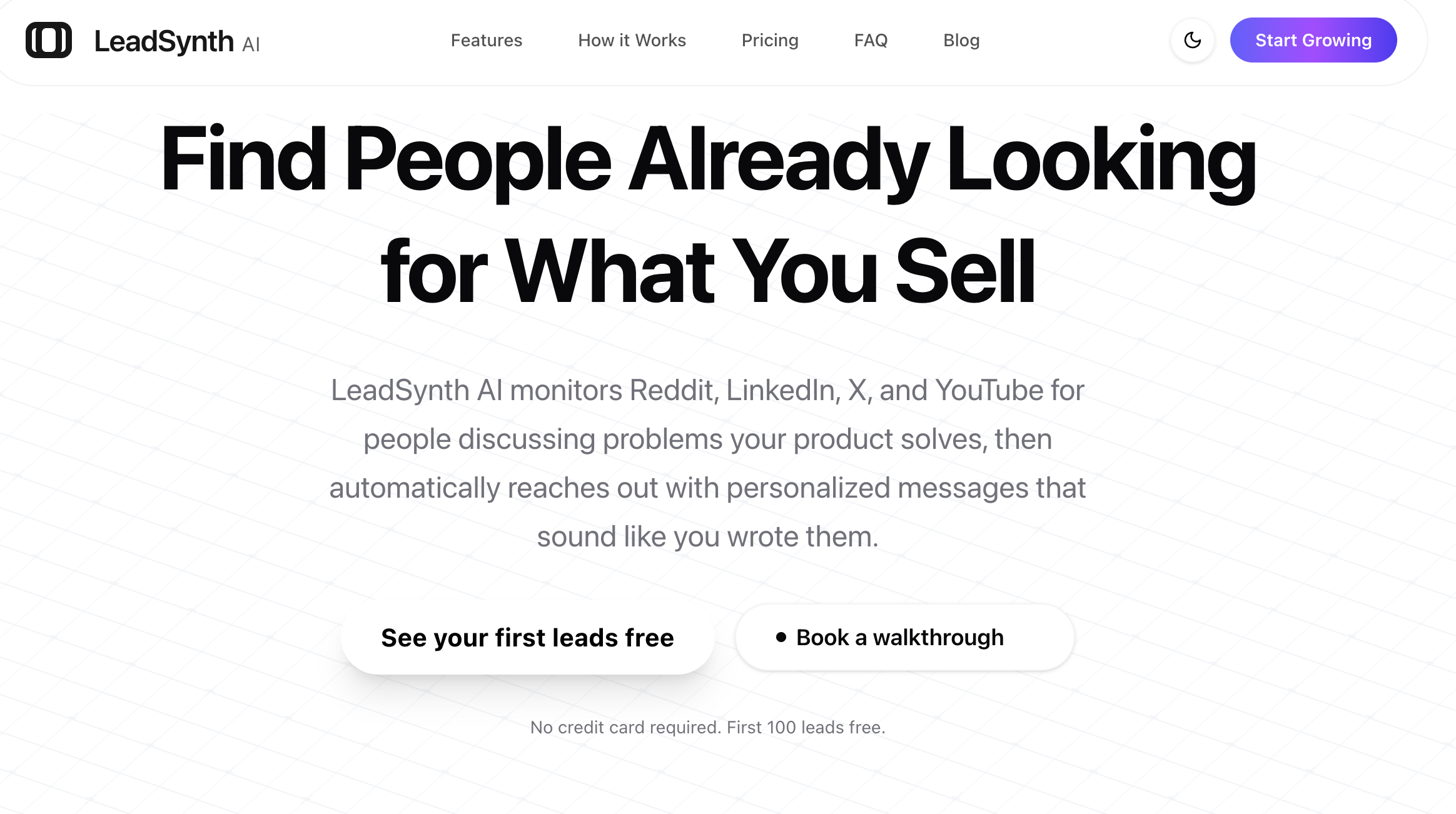 LeadSynth finds high-intent leads and automates outreach directly from conversations