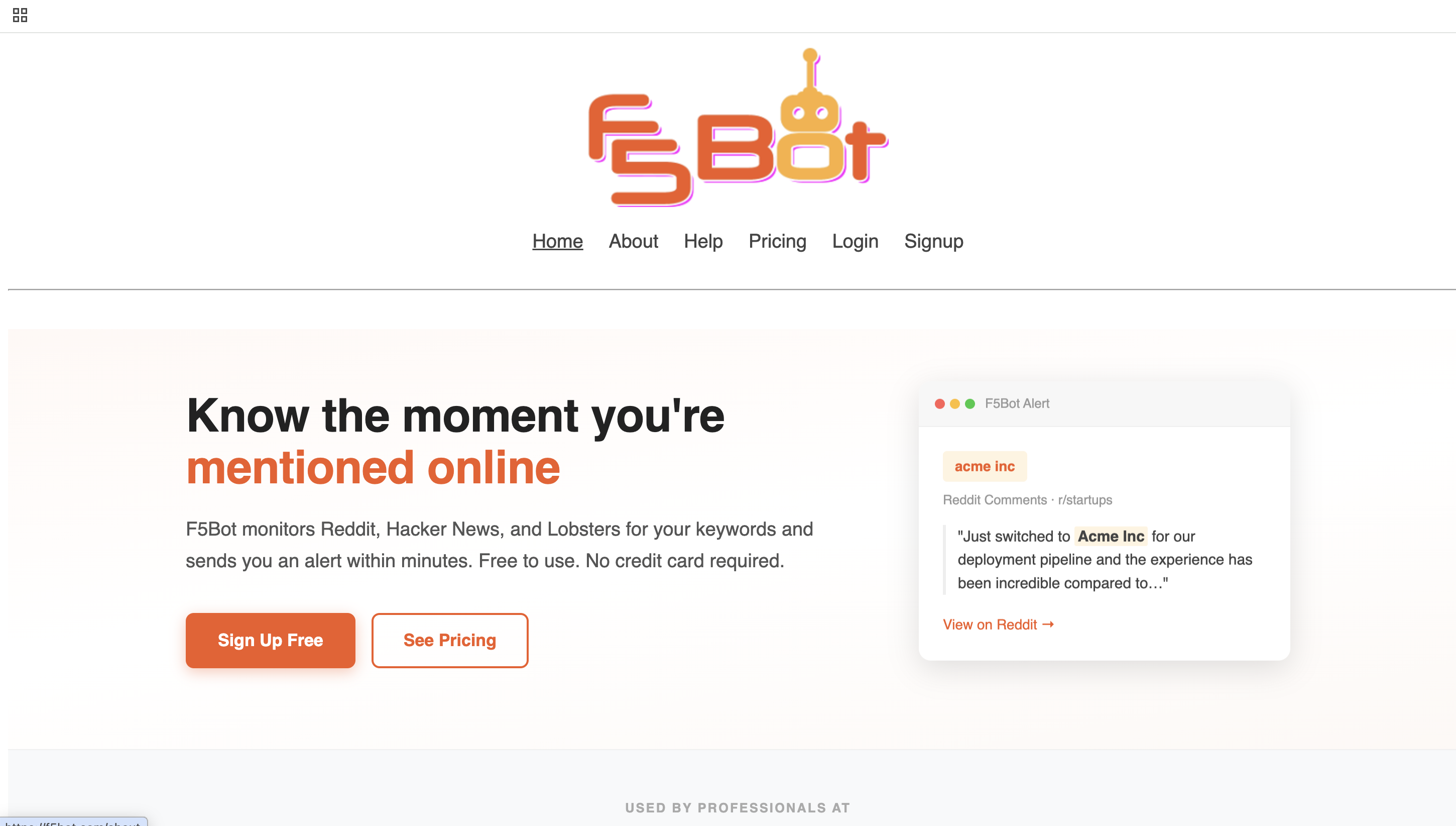 F5Bot is a simple keyword alert tool that tracks mentions across Reddit, Hacker News, and Lobsters.