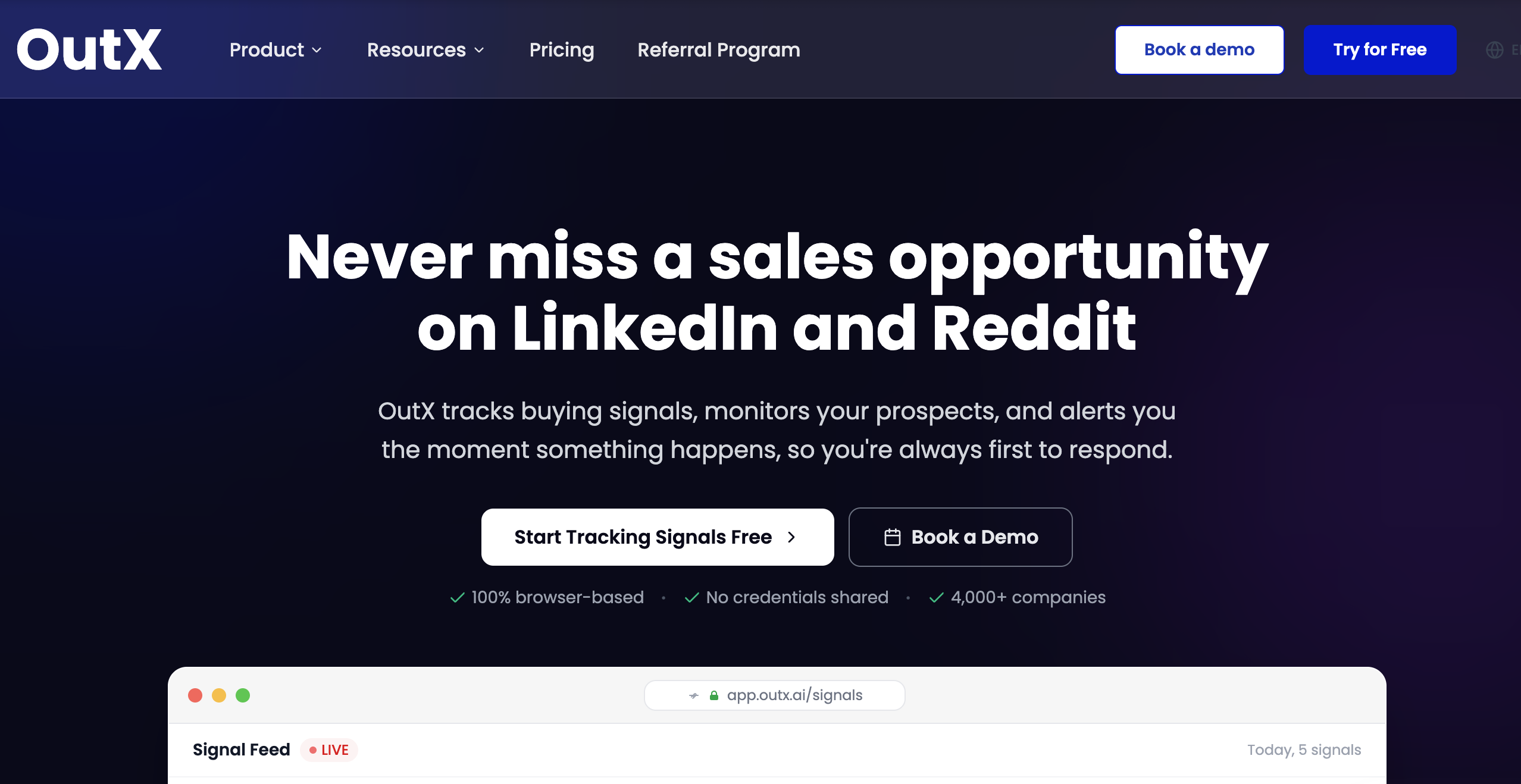 OutX | $99 → $999/mo | Real-time signals, watchlists, alerts | Not deep scraping | Early outreach advantage | Acting on LinkedIn buying signals instantly | Founder-led sales teams, outbound teams |