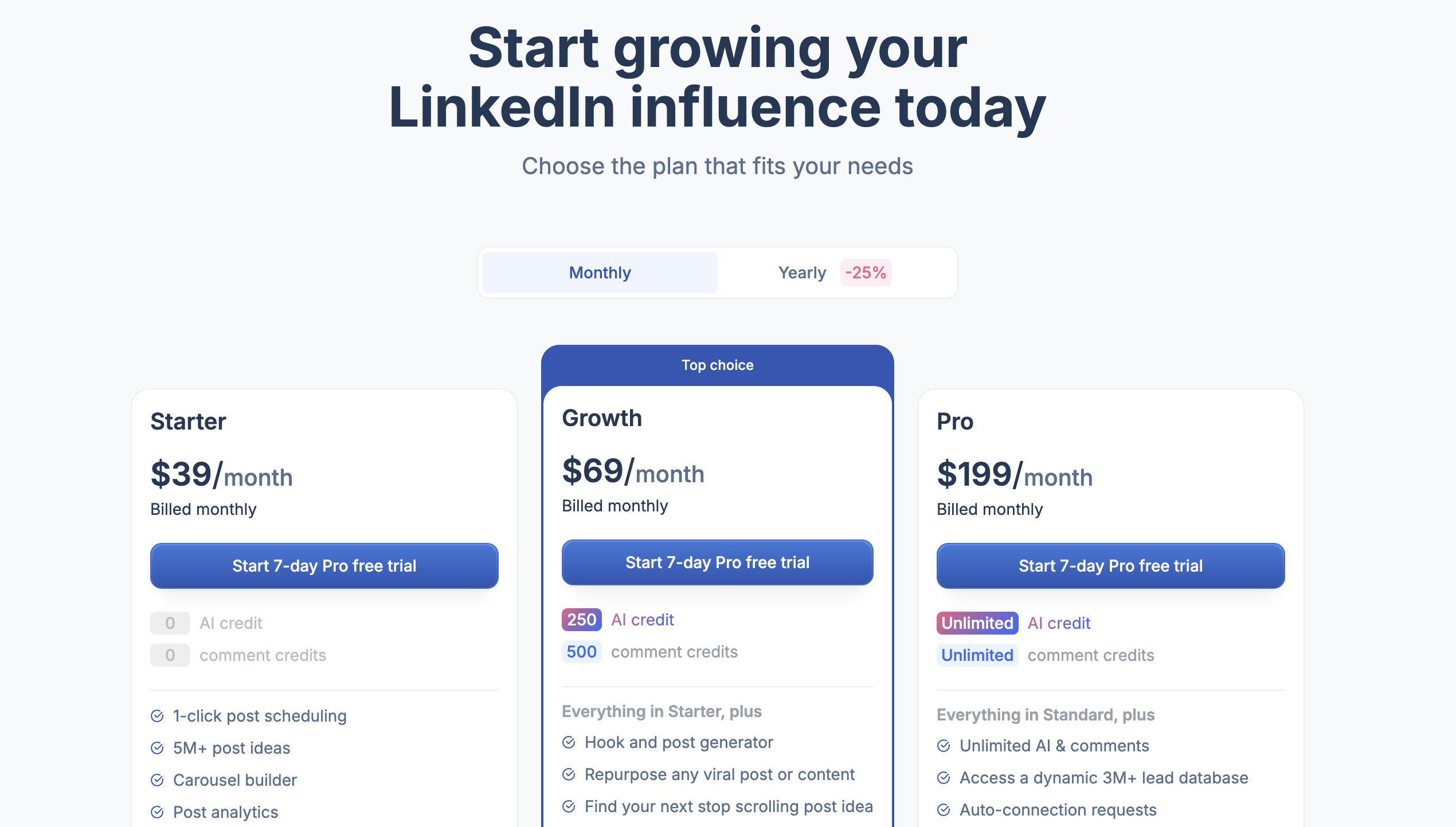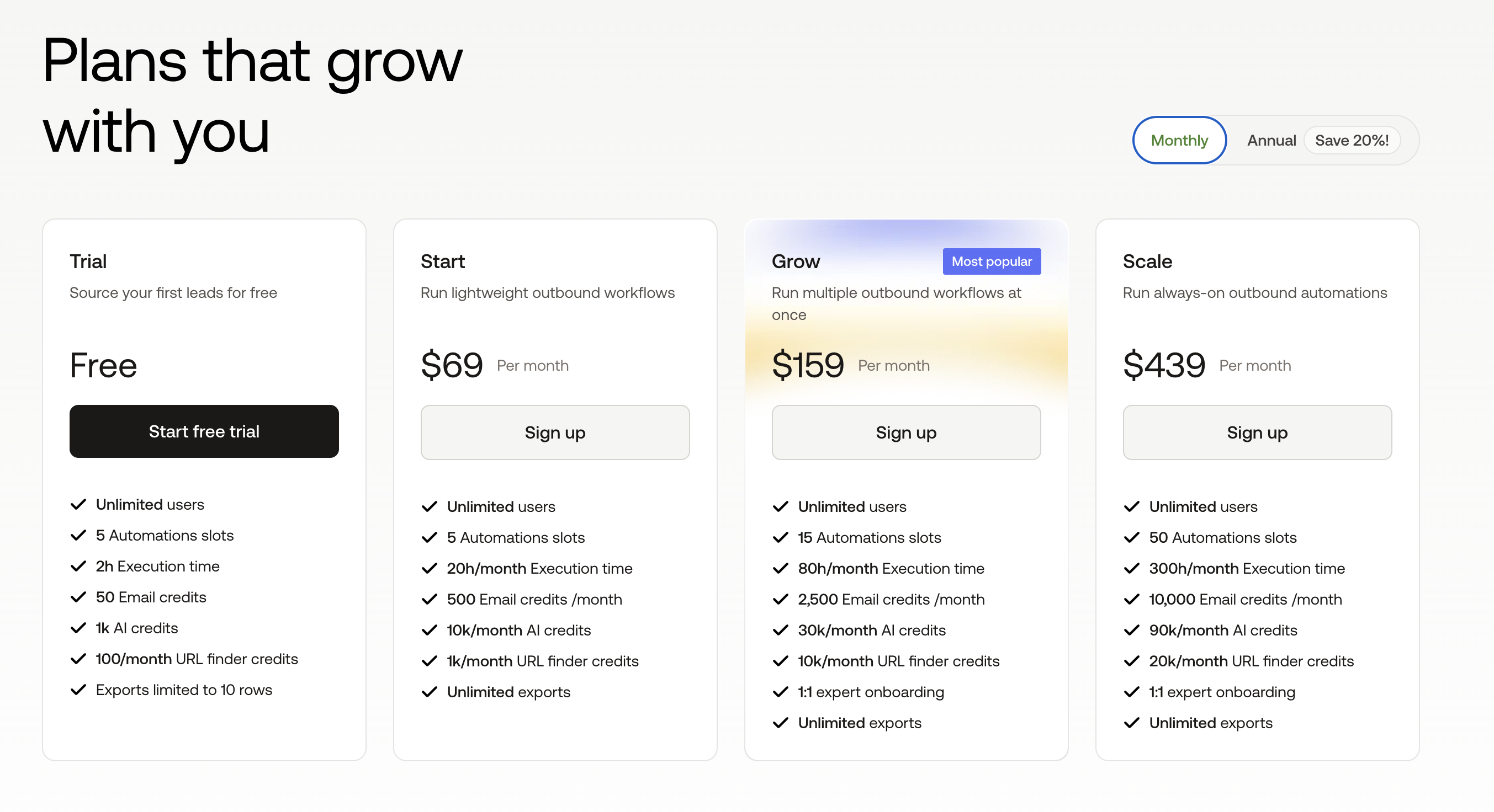 Grow: $159/month billed monthly