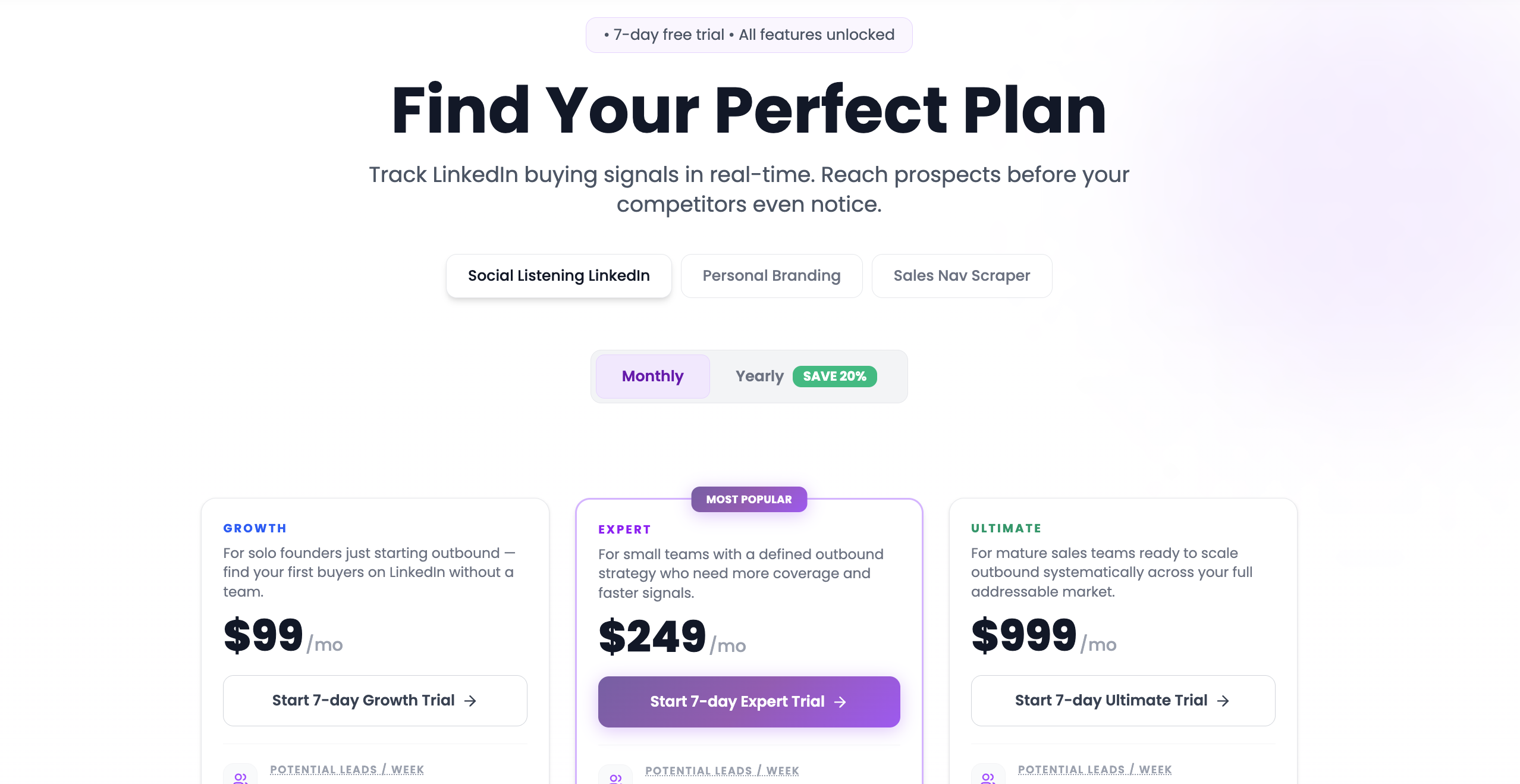 PhantomBuster | $69 → $439/mo | Scraping + outreach automation | No signal prioritization | Lead lists, outbound campaigns | Extracting commenters/likers and running outreach | Agencies, SDRs, outbound-heavy sales teams |