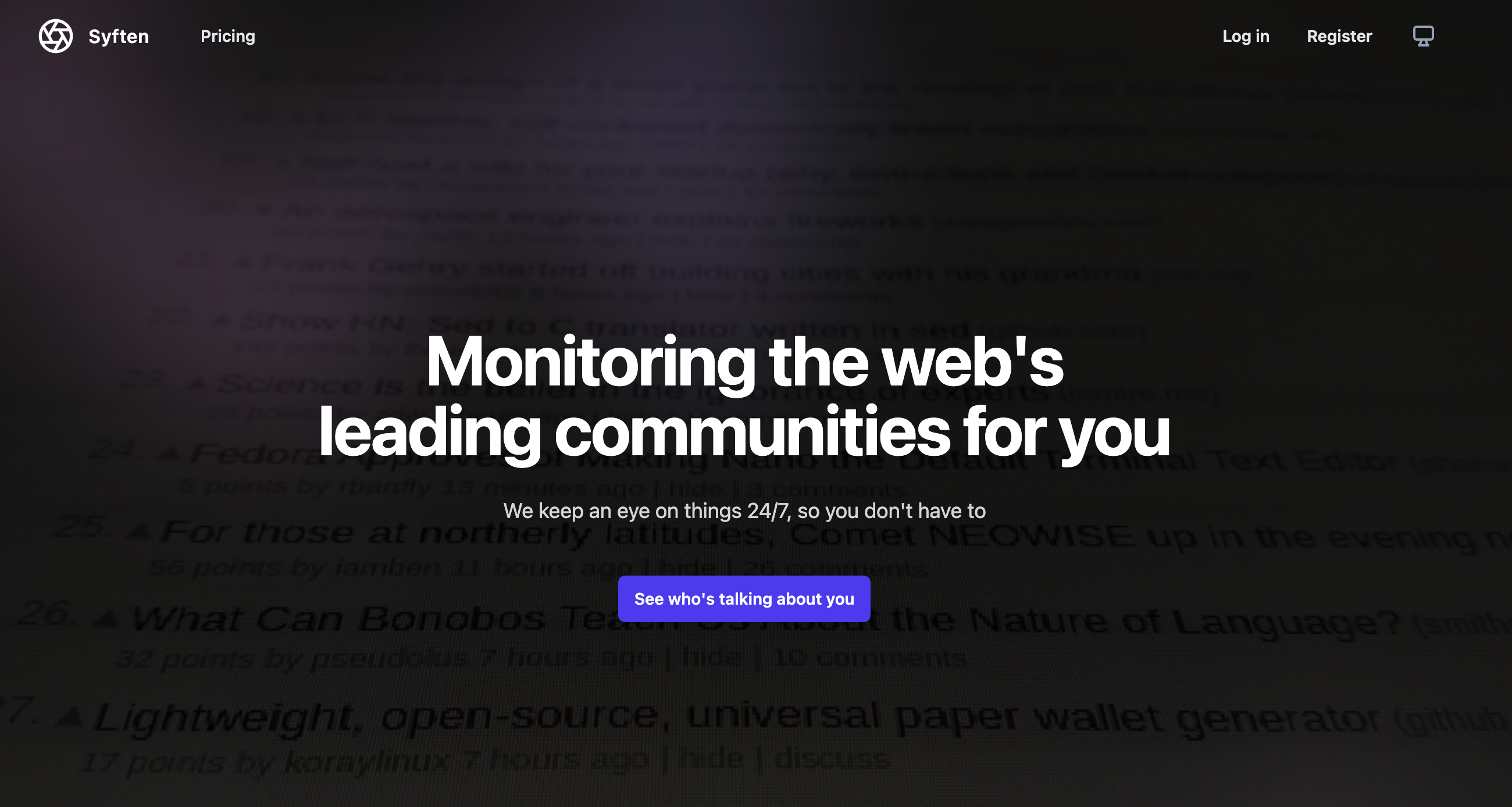 Syften – Tracks discussions across Reddit, Hacker News, and Indie Hackers communities